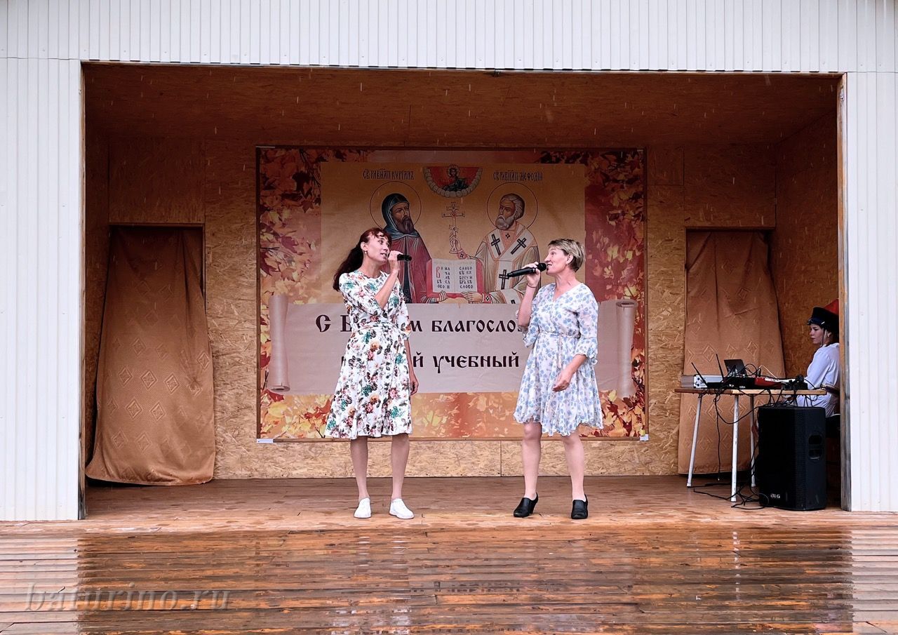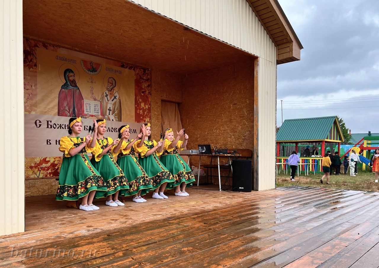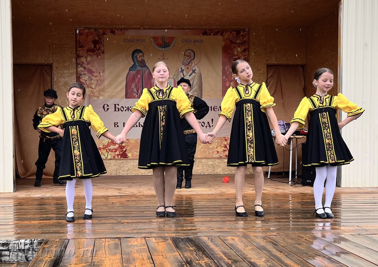 Ребятам совсем не хотелось расходиться после молебна, и запланированную концертную программу провели прямо под моросящим дождиком. Выступили: образцовый хореографический ансамбль «Конфетти» под руководством Молчановой Татьяны Михайловны, Щербаковой Снежаны Сергеевны, Графовой Анастасии Михайловны (с. Нестерово); вокальный коллектив «Птица» под руководством Ольги Вазильевны Воротниковой (с. Ангыр); танцевальный коллектив «Фантазия» и ансамбль ложкарей «Калинка» под руководством Гуртовой Ирины Вадимовны (с. Кика); ансамбль ложкарей «Радуга» под руководством Баляевой Анастасии Вячеславовны. Ребята подготовили танцевальные, вокальные номера, порадовали гостей и игрой на деревянных ложках.