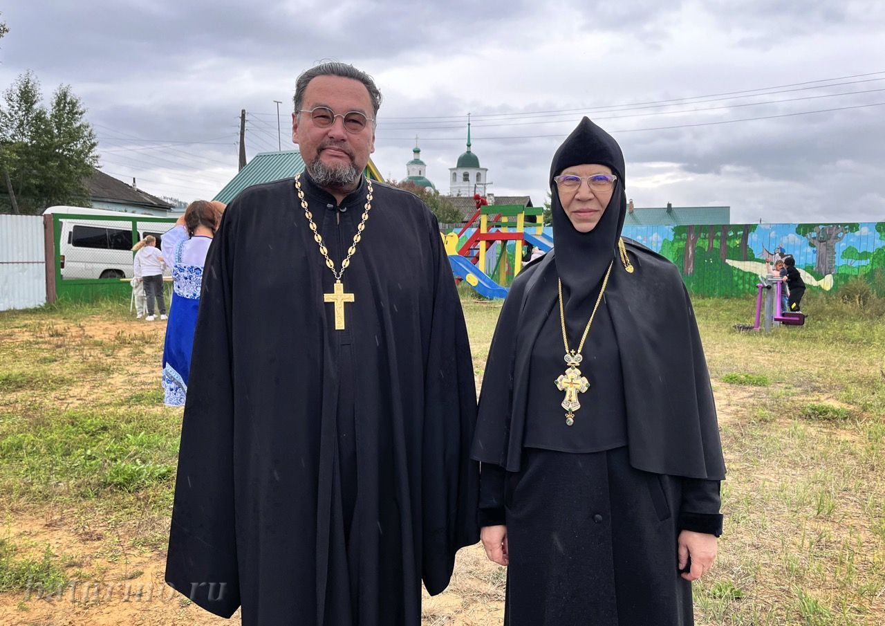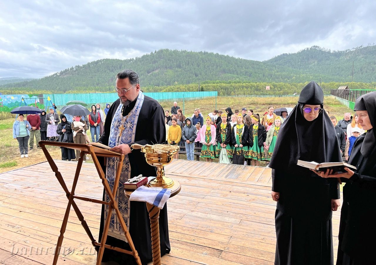 Настоятельница обители, матушка Ника, поздравила всех гостей с началом учебного года. Она поблагодарила детей и взрослых за то, что собрались вместе помолиться и испросить Божие благословение на грядущую учебу. Матушка отметила активных помощников монастыря — подростковый патриотический клуб «Витязи» (с. Ангыр) и его руководителя Татьяну Валерьевну, которые приезжали летом потрудиться в монастыре.