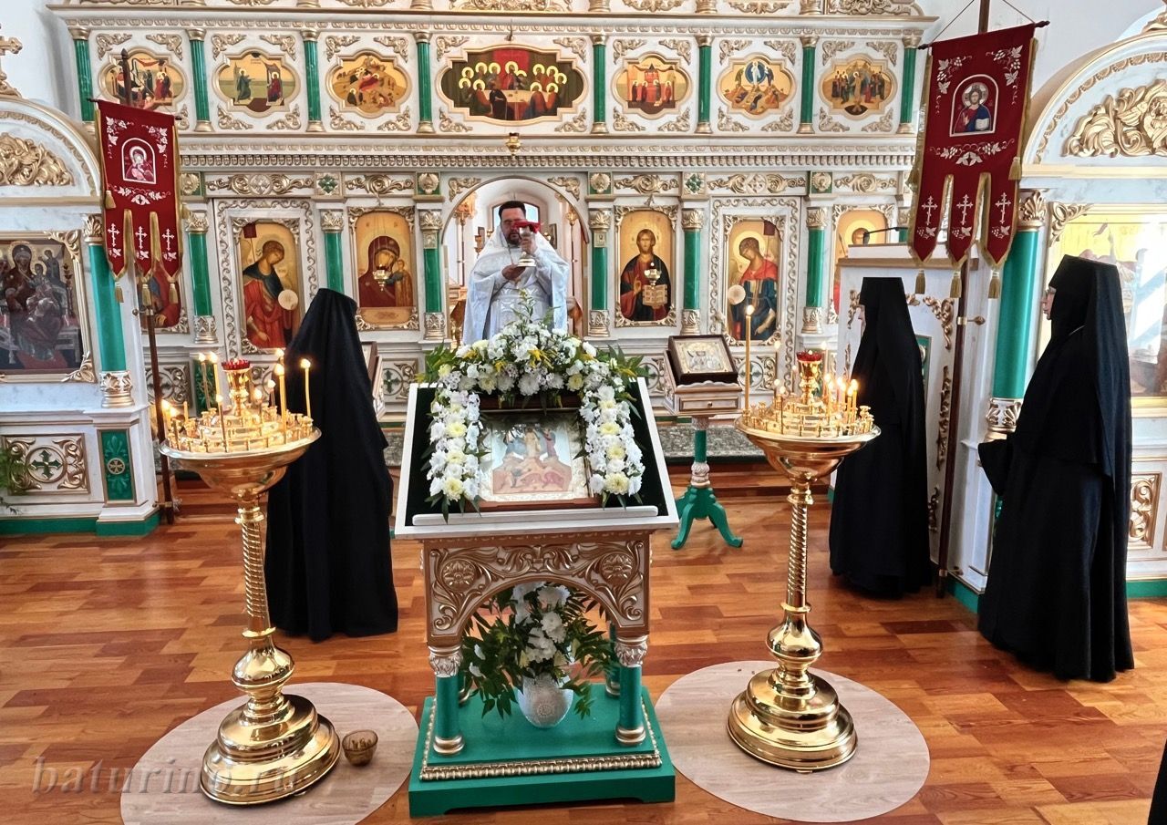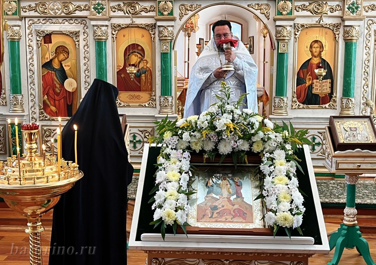 На торжественное богослужение, чтобы вместе с духовенством воспеть славу Преобразившемуся Господу, собрались насельники обители и прихожане из близлежащих сел. Храм торжественно украшен белыми цветами, символизирующими неизреченный Божественный свет, который осиял апостолов на горе Фавор. За богослужением все насельники обители сподобились причаститься Святых Христовых Тайн.