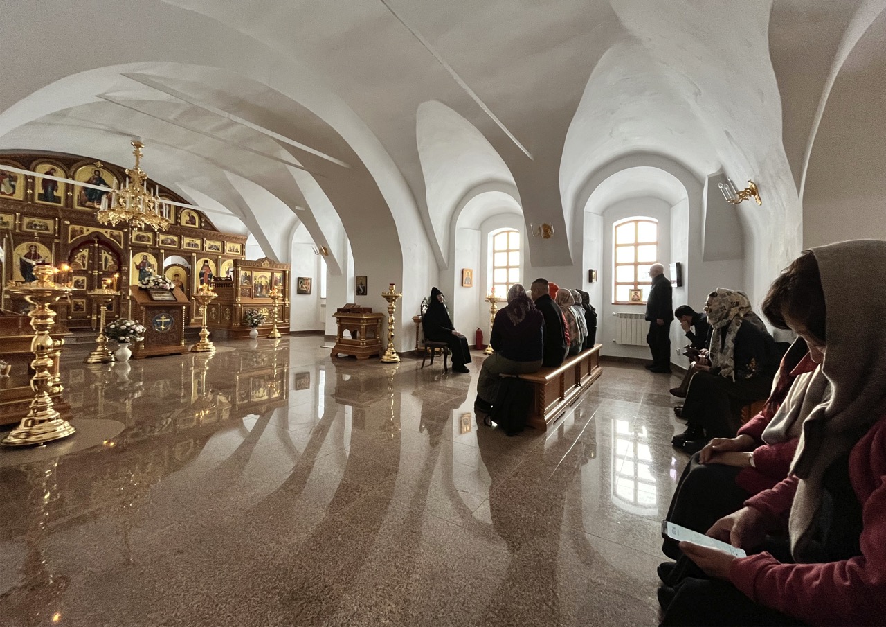 Практическая часть визита включала в себя подробную экскурсию по обители. Гости посетили оба придела монастырского храма – Сретенский и Георгиевский, помолились у святых образов, ознакомились с ассортиментом иконной лавки и экспозицией музея «Святые правители Руси». Завершился визит самым трогательным образом – совместным участием в ежедневном крестном ходе вокруг обители, который объединил сестер и гостей в общей молитве.
