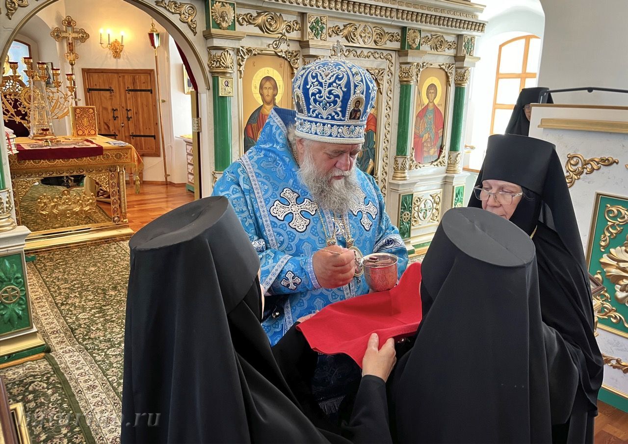 8 августа, в канун дня памяти святого великомученика и целителя Пантелеимона, Владыка Константин совершил акафистное пение, во время которого сестры обители молитвенно присоединились к чтению и пению. 9 августа, в сам праздник, архипастырь возглавил Божественную литургию в монастыре. За богослужением почти все насельницы обители причастились Святых Христовых Таин.