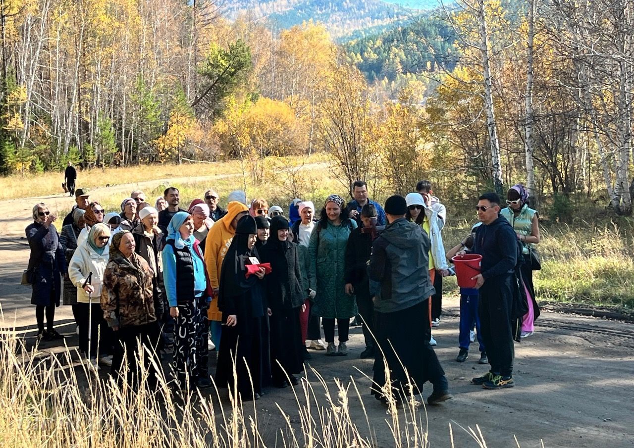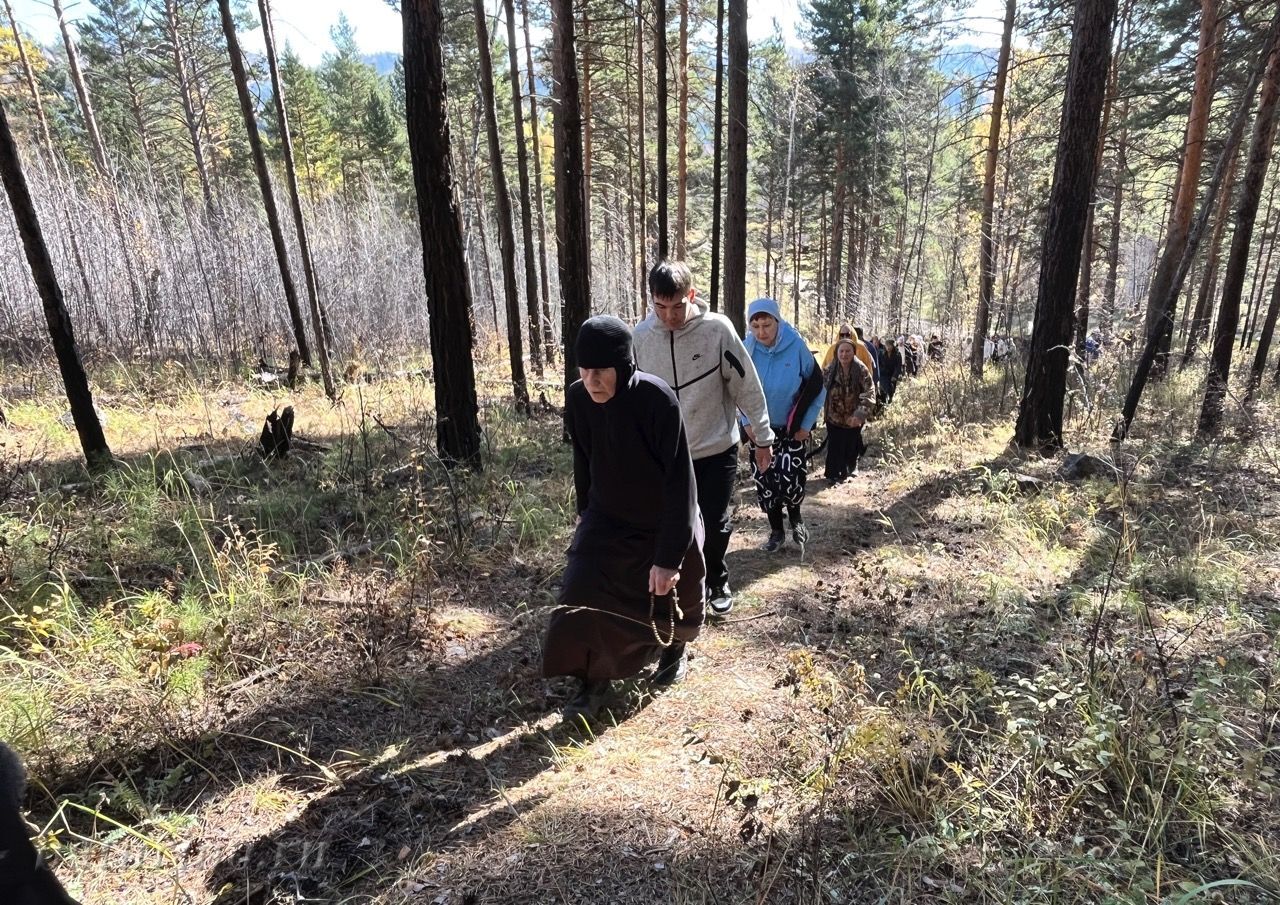 После праздничной трапезы духовенство, сестры обители и паломники во главе с иереем Николаем Аюшеевым совершили крестный ход на Крестовый пик, где был отслужен молебен с чтением акафиста празднику Воздвижения Креста Господня. Обращаясь к верующим, отец Николай в своей проповеди затронул тему исповедания веры в повседневной жизни. Он призвал не стесняться крестного знамения в общественных местах, подчеркнув, что это не демонстративность, а естественное проявление любви к Богу и просьба о Его благословении. «Перекреститься тихонечко, сказать: "Господи, благослови мой путь" — это тоже есть исповедание нашей с вами веры», — сказал священник.