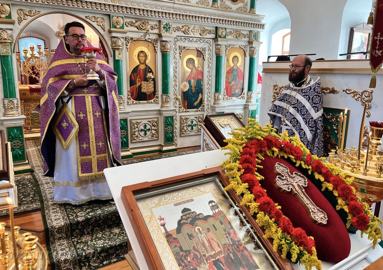 По окончании Литургии с проповедью к молящимся обратился протоиерей Михаил Литвинов. Он напомнил историю праздника, связанного с обретением в IV веке равноапостольной царицей Еленой Креста, на котором был распят Спаситель. «Крест — это символ любви Бога к человеку, — подчеркнул отец Михаил. — С одной стороны, этот праздник соединен с определенной скорбью, ведь мы вспоминаем искупительную жертву Христа. Но с другой — это великая радость, потому что через Крестные страдания и последующее Воскресение Господь даровал нам жизнь вечную. С самого начала христианства Крест стал символом нашего спасения». Важной частью праздника стал сбор пожертвований на помощь беженцам, пострадавшим мирным жителям Донбасса и приграничных территорий.