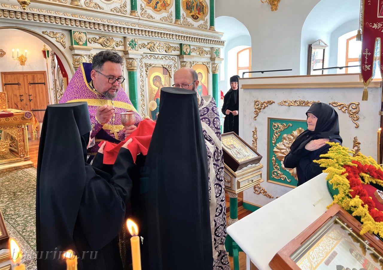 В сам день праздника Божественную литургию совершил клирик обители протоиерей Михаил Литвинов в сослужении настоятеля храма в честь Казанской иконы Божией Матери села Горячинск иерея Николая Аюшеева. На праздник собрались насельники монастыря, паломники из г. Улан-Удэ и близлежащих сел, прихожане храма Покрова Пресвятой Богородицы г. Улан-Удэ, активное участие приняли члены молодежной организации Витязи из села Ангыр с руководителем Татьяной Вишняковой. Многие верующие удостоились причаститься Святых Христовых Таин.