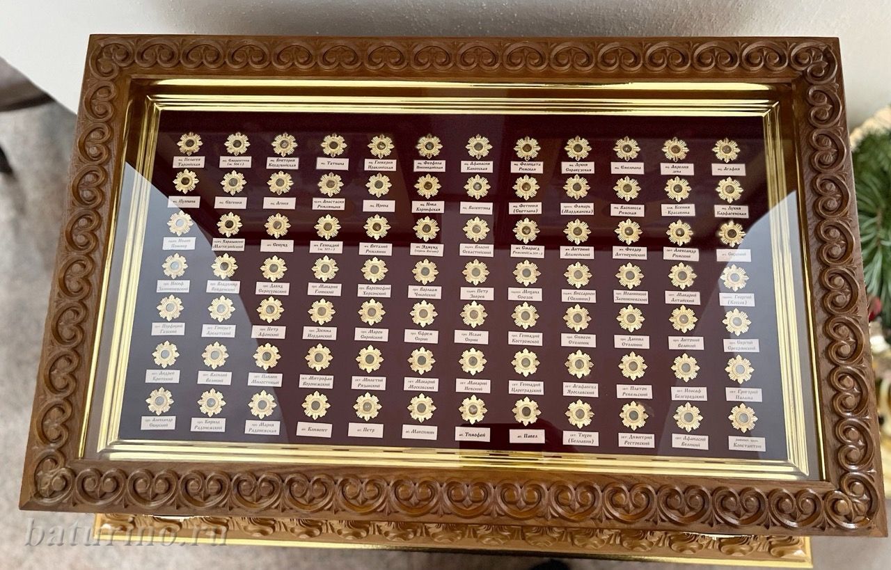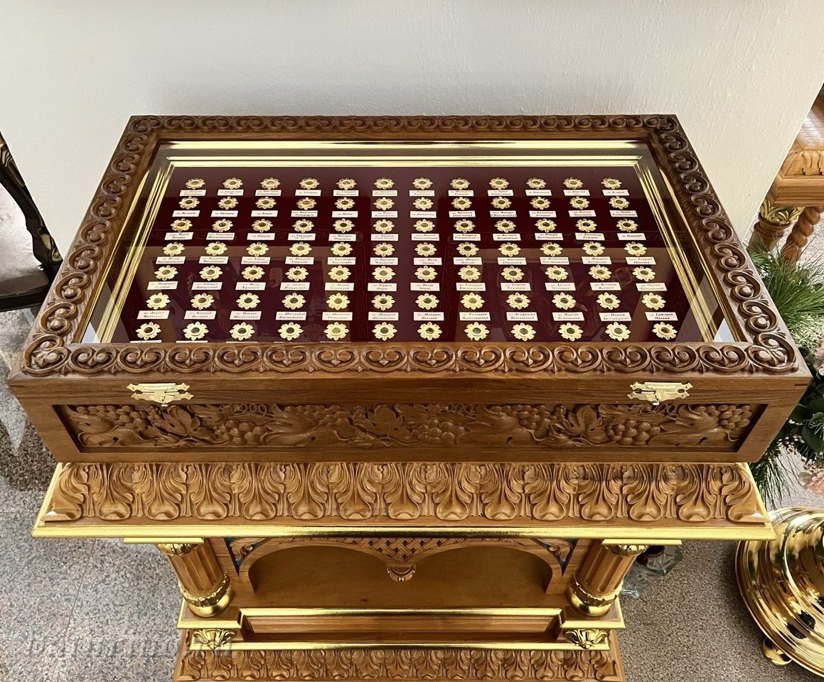 Этот драгоценный для верующих ковчег был изготовлен с глубоким благоговением и мастерством. Работу выполнило ООО «Художественно-производственное предприятие “СОФРИНО”» Русской Православной Церкви, известное своими высокими стандартами в создании церковной утвари. Благодарим семью Геннадия и Ирины Рублевых за помощь в приобретении мощевиков для этого ковчега.