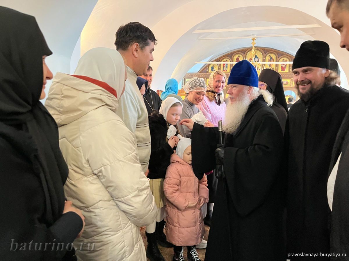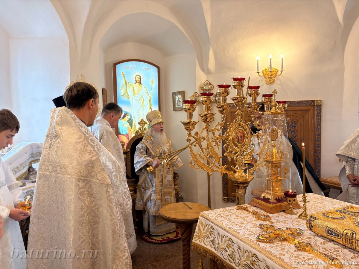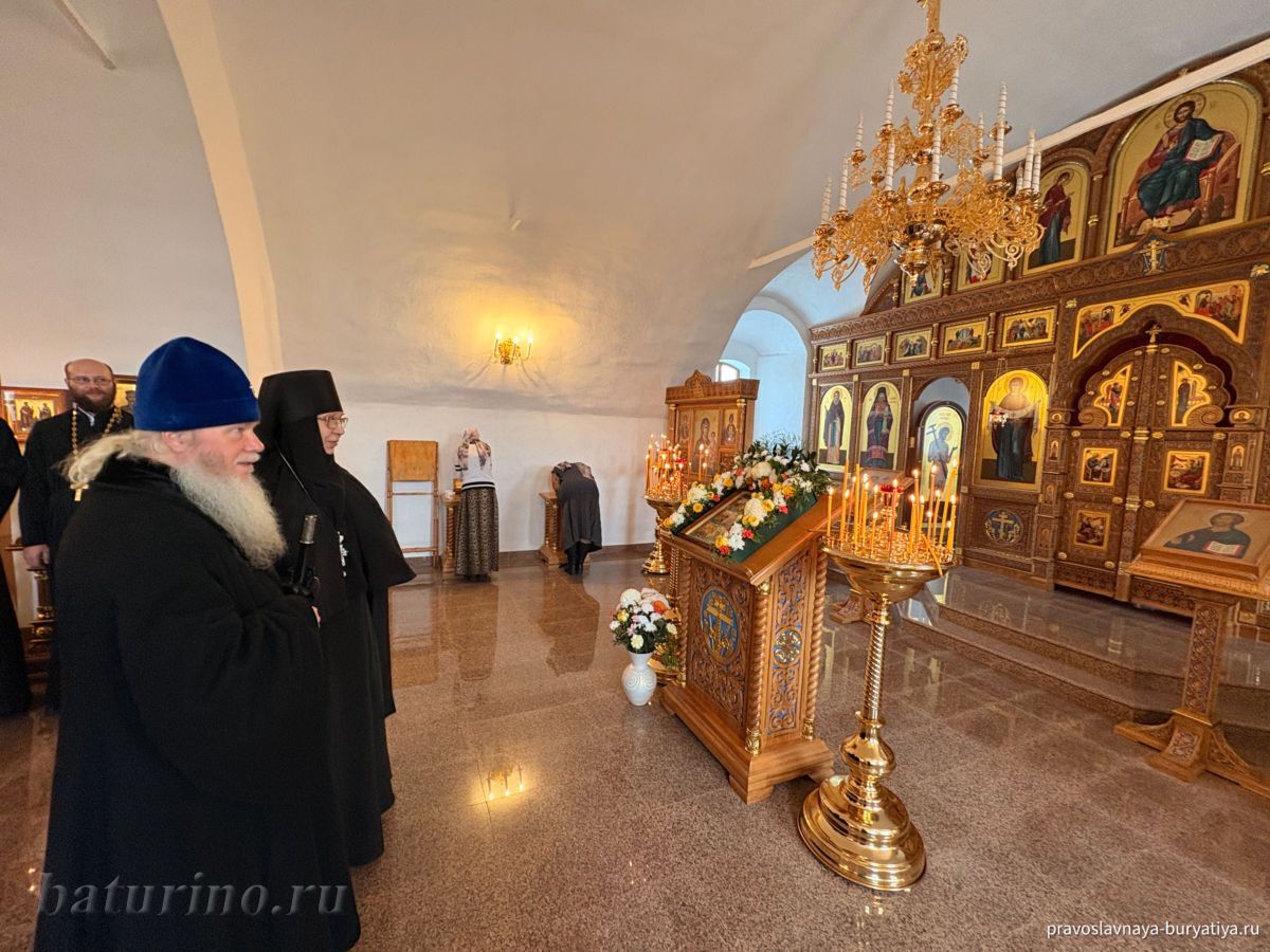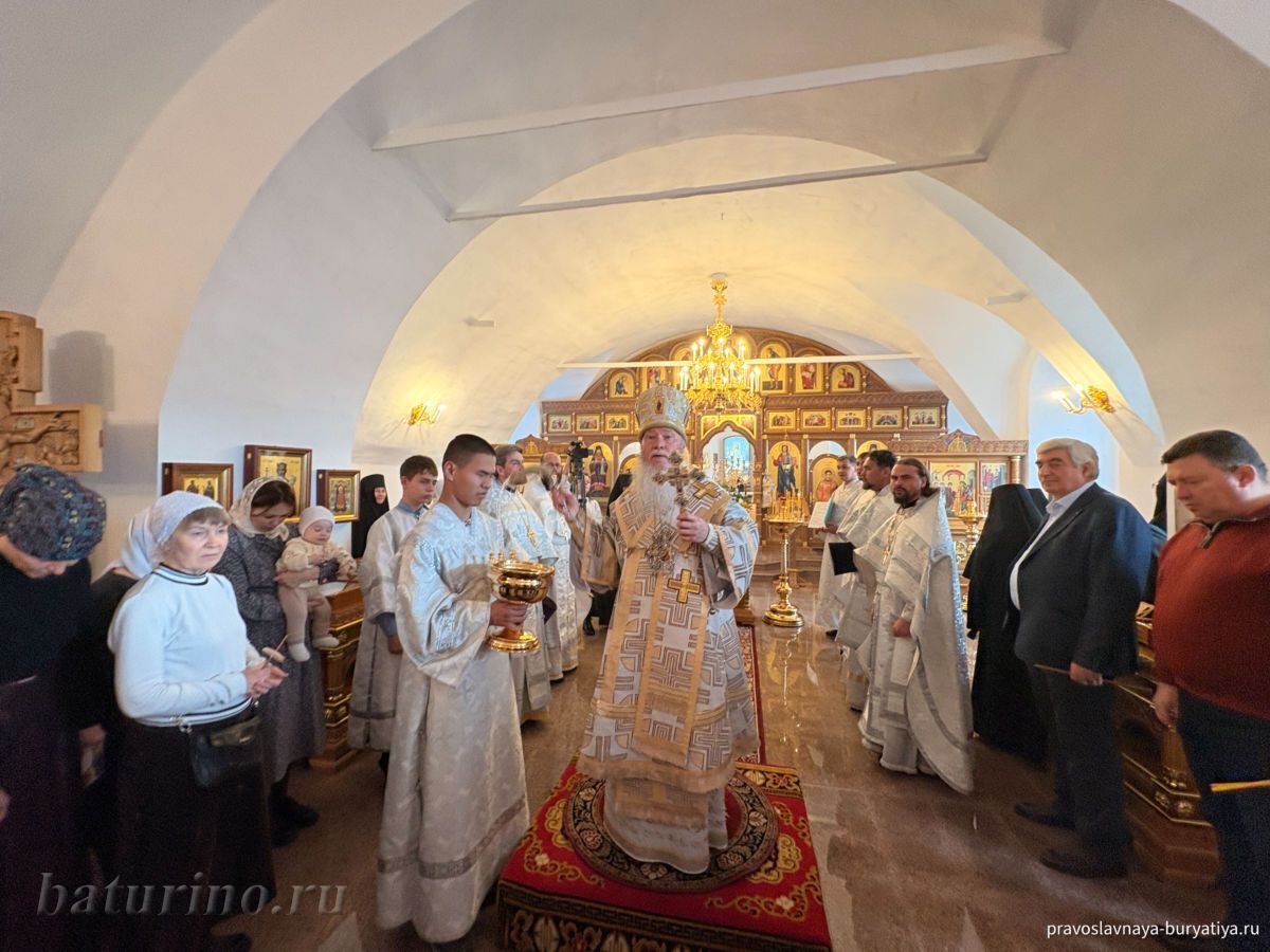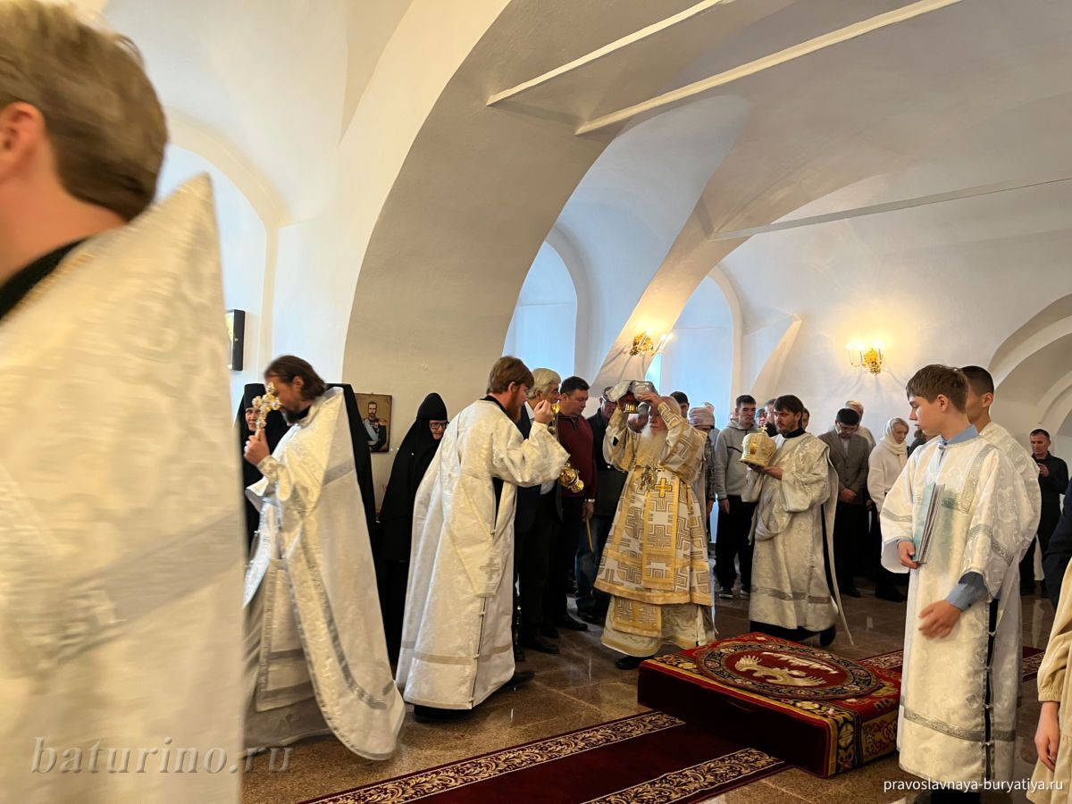 3 ноября, в день памяти преподобного Илариона Великого, в Сретенском женском монастыре села Батурино произошло знаменательное событие — Высокопреосвященнейший Иосиф, митрополит Улан-Удэнский и Бурятский, совершил чин Великого освящения главного придела обители в честь Сретения Господня. Этот день стал кульминацией многомесячных трудов по капитальному ремонту нижнего храма монастыря, осуществленных по благословению Владыки Иосифа. После освящения митрополит Иосиф возглавил Божественную литургию в обновленном храме.