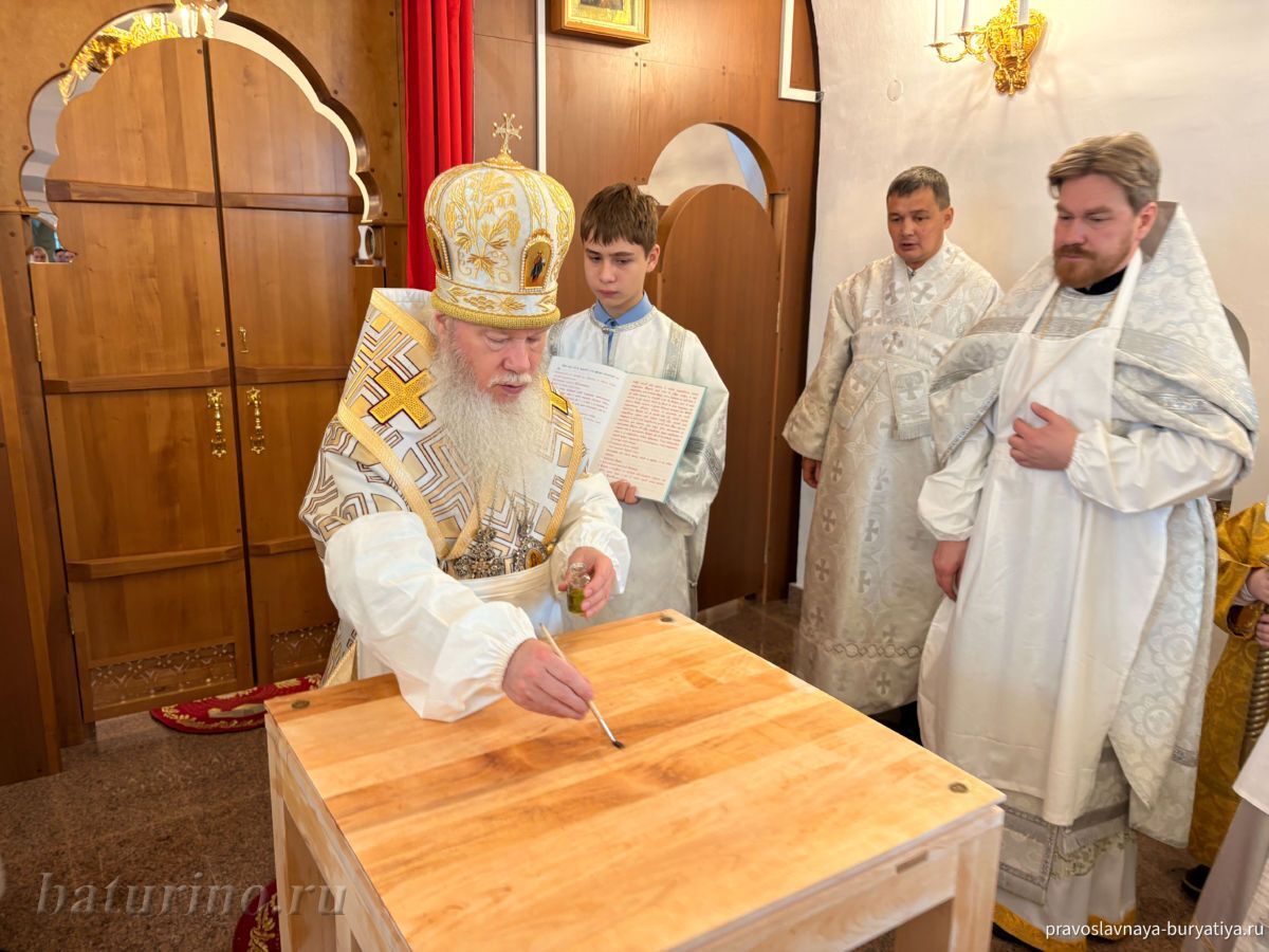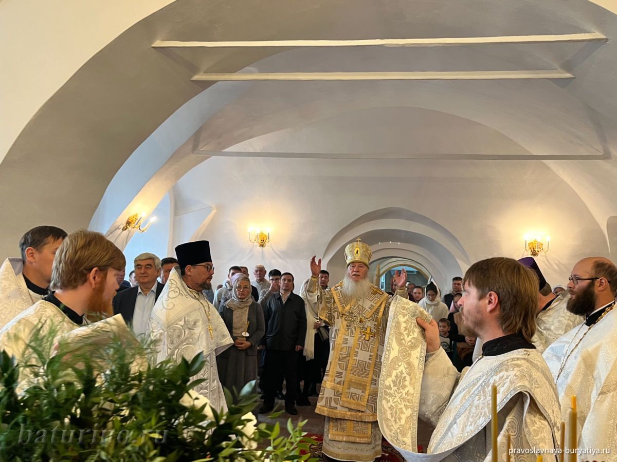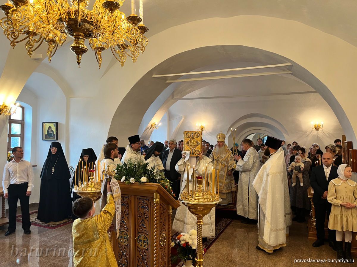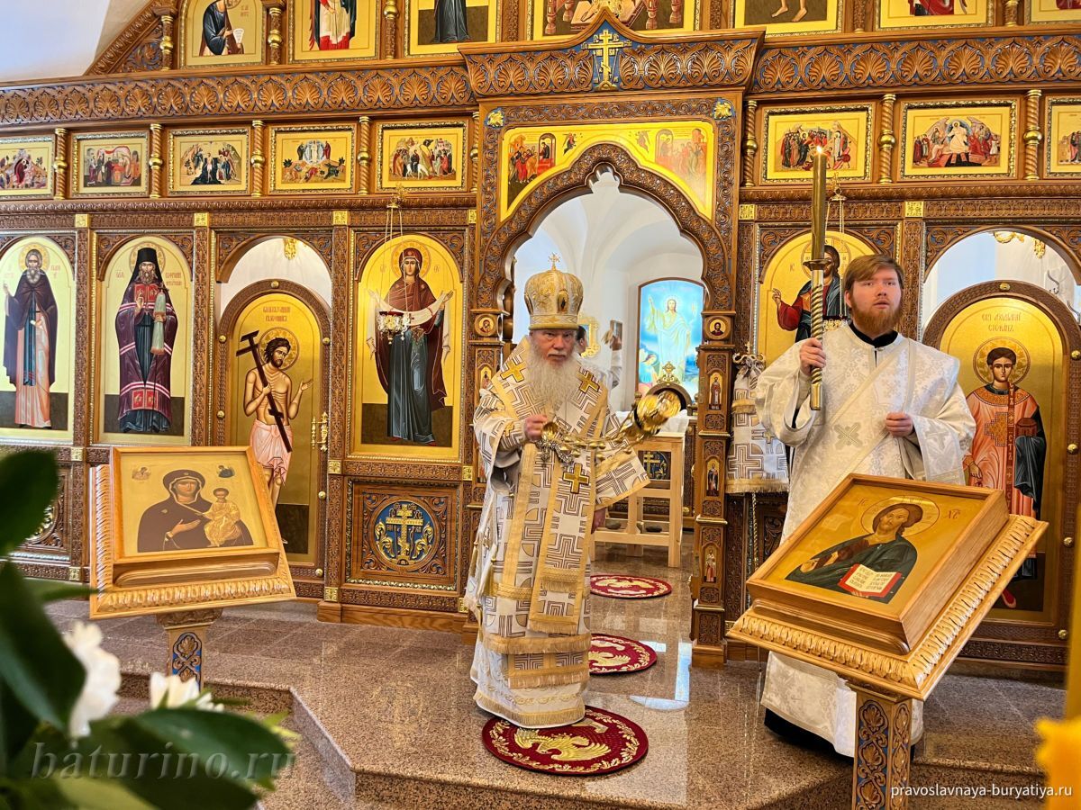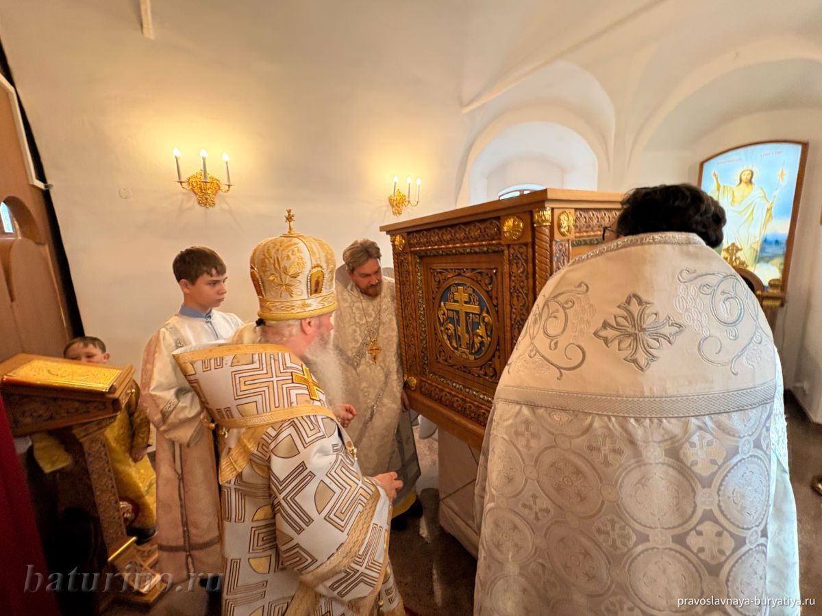 3 ноября, в день памяти преподобного Илариона Великого, в Сретенском женском монастыре села Батурино произошло знаменательное событие — Высокопреосвященнейший Иосиф, митрополит Улан-Удэнский и Бурятский, совершил чин Великого освящения главного придела обители в честь Сретения Господня. Этот день стал кульминацией многомесячных трудов по капитальному ремонту нижнего храма монастыря, осуществленных по благословению Владыки Иосифа. После освящения митрополит Иосиф возглавил Божественную литургию в обновленном храме.