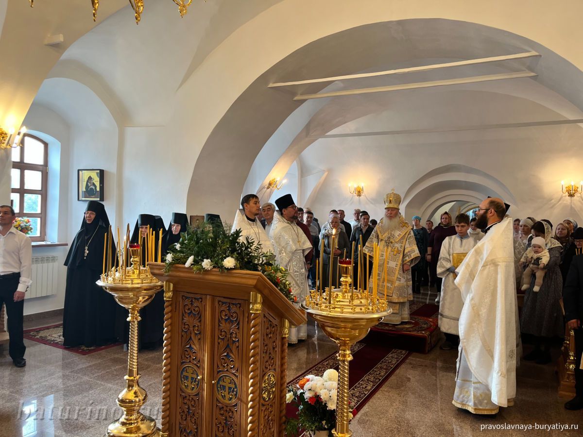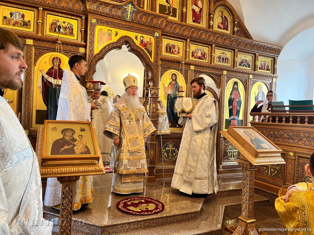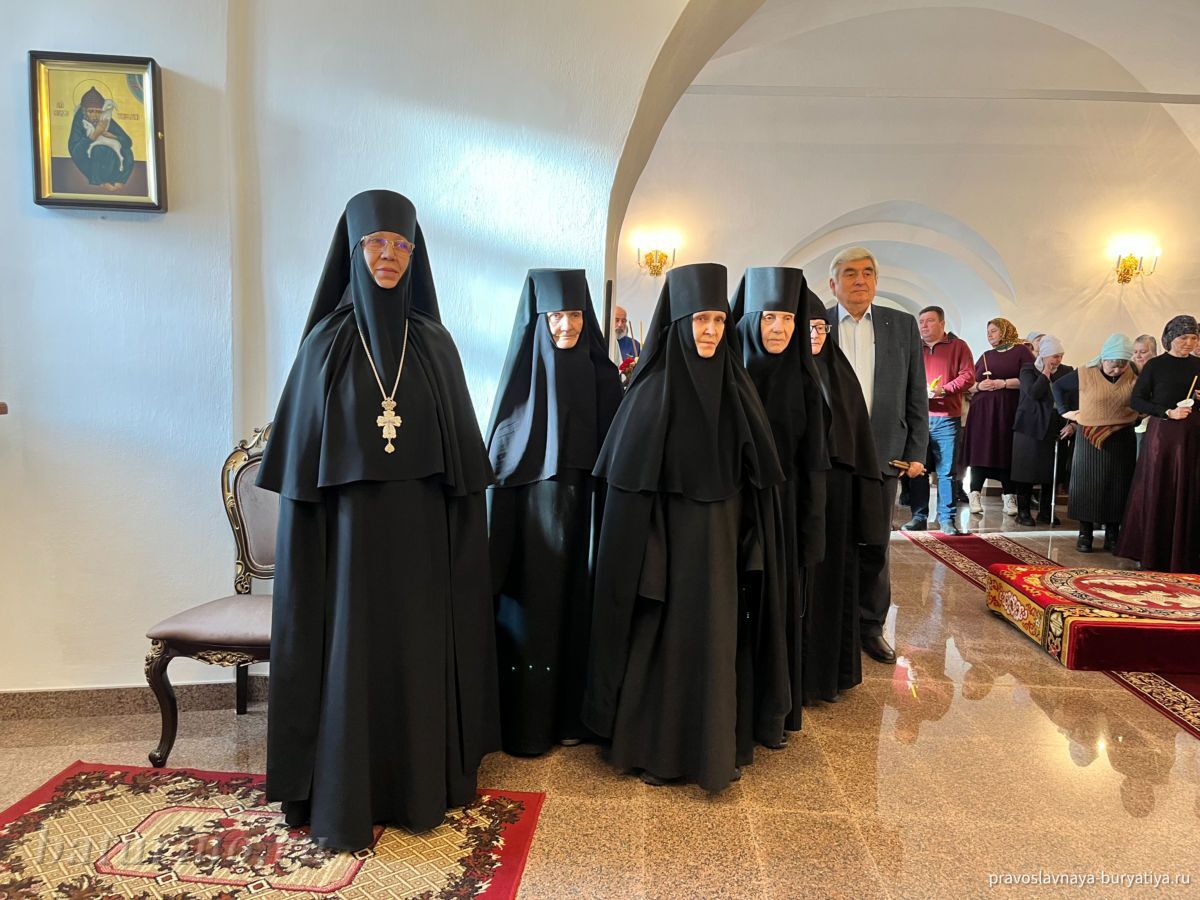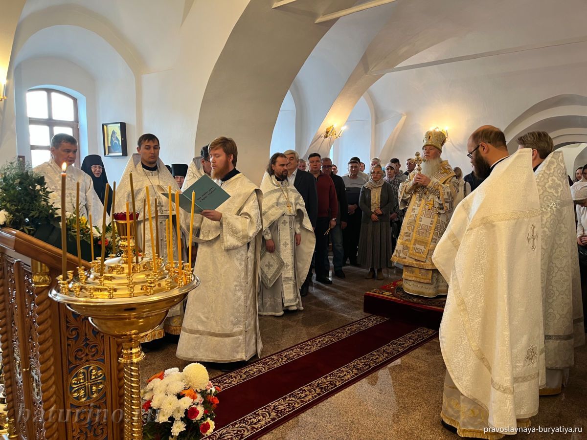 Владыке сослужили секретарь Улан-Удэнской и Бурятской епархии, настоятель Одигитриевского собора г. Улан-Удэ иеромонах Тихон (Тихомиров), благочинный Улан-Удэнского церковного округа, настоятель Вознесенского храма г. Улан-Удэ иерей Роман Хлыбов, клирик монастыря протоиерей Михаил Литвинов, руководитель епархиального молодежного отдела, настоятель Троицкого храма г. Улан-Удэ иерей Николай Власов и настоятель храма в честь Казанской иконы Божией Матери с. Горячинск иерей Николай Аюшеев.