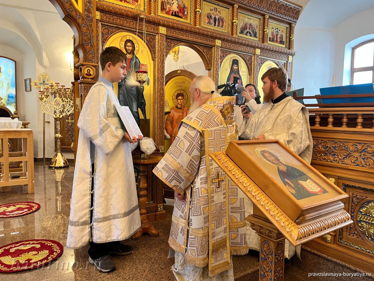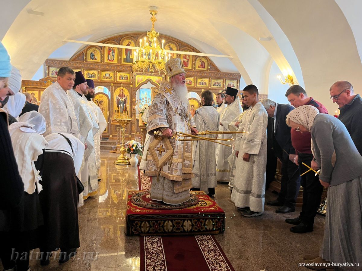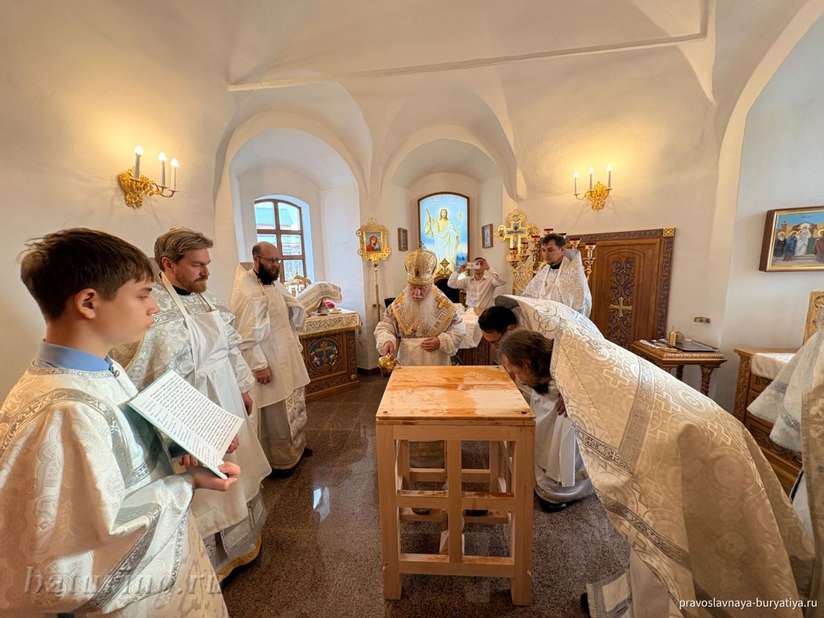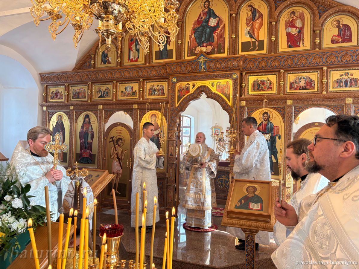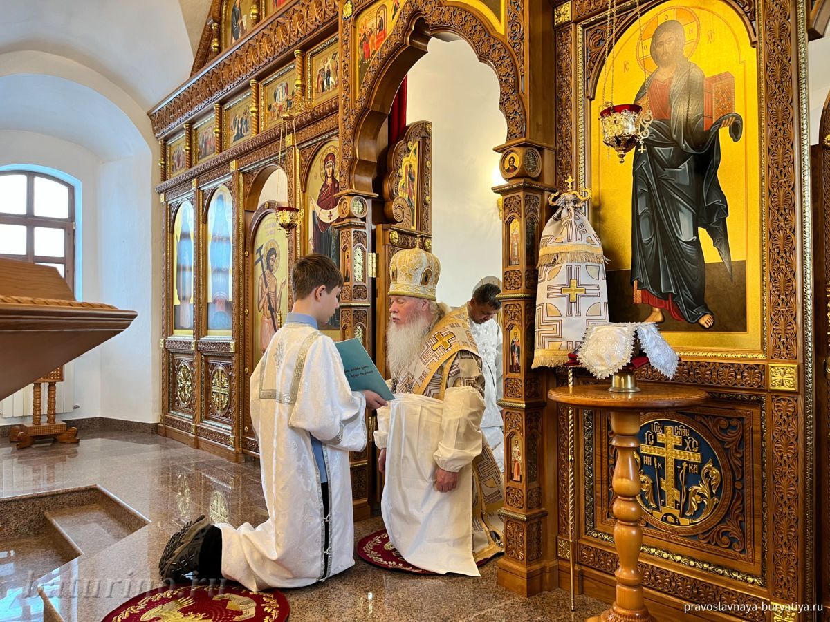 Владыке сослужили секретарь Улан-Удэнской и Бурятской епархии, настоятель Одигитриевского собора г. Улан-Удэ иеромонах Тихон (Тихомиров), благочинный Улан-Удэнского церковного округа, настоятель Вознесенского храма г. Улан-Удэ иерей Роман Хлыбов, клирик монастыря протоиерей Михаил Литвинов, руководитель епархиального молодежного отдела, настоятель Троицкого храма г. Улан-Удэ иерей Николай Власов и настоятель храма в честь Казанской иконы Божией Матери с. Горячинск иерей Николай Аюшеев.