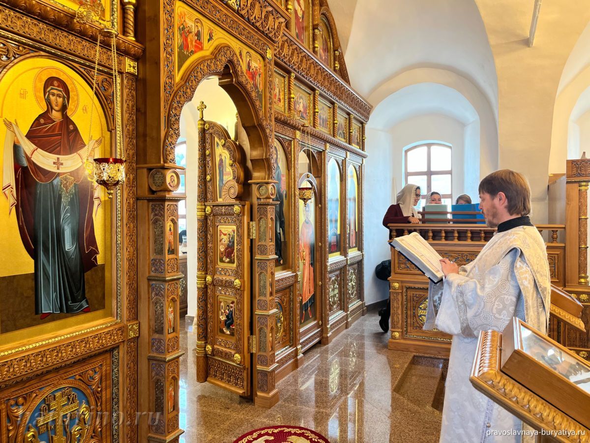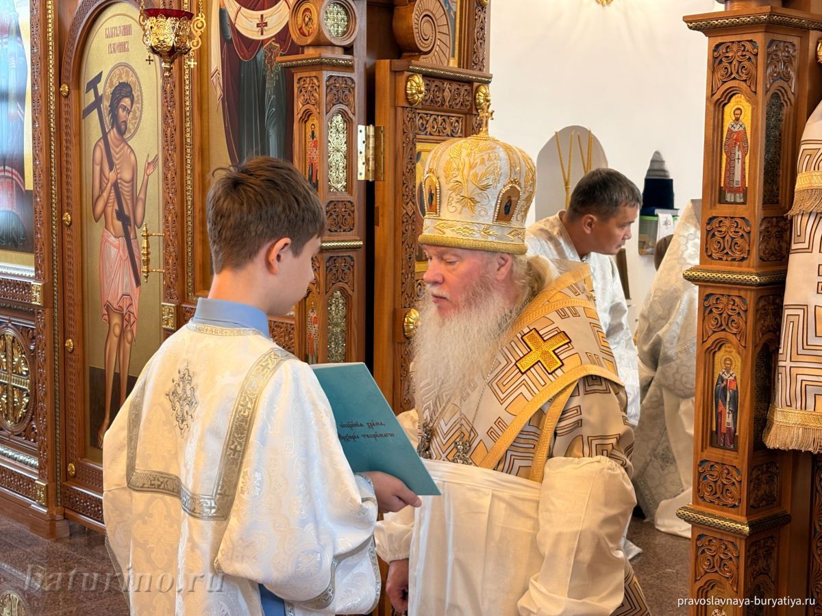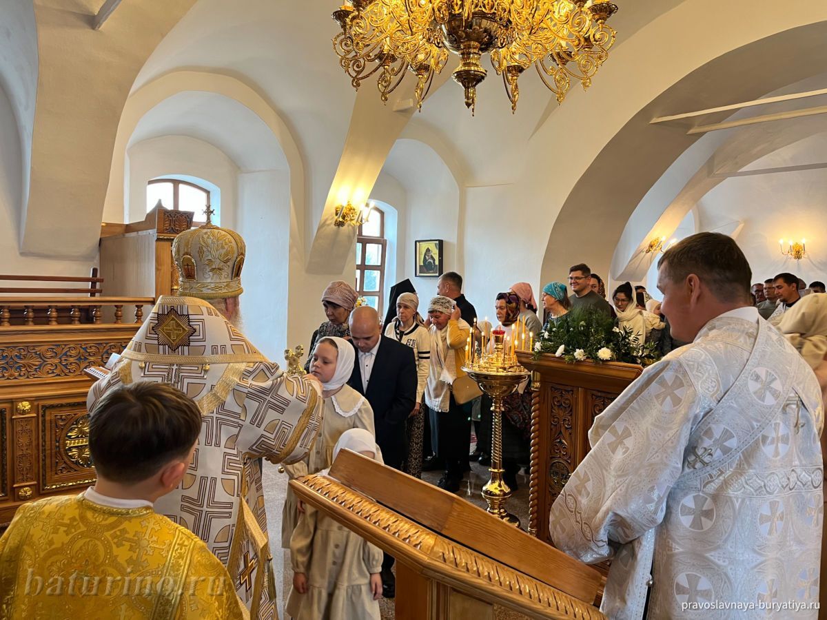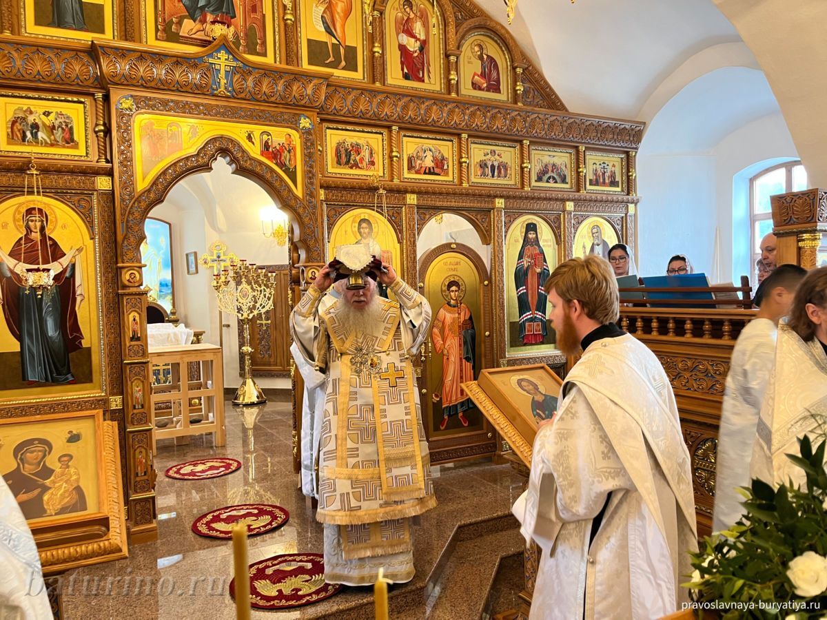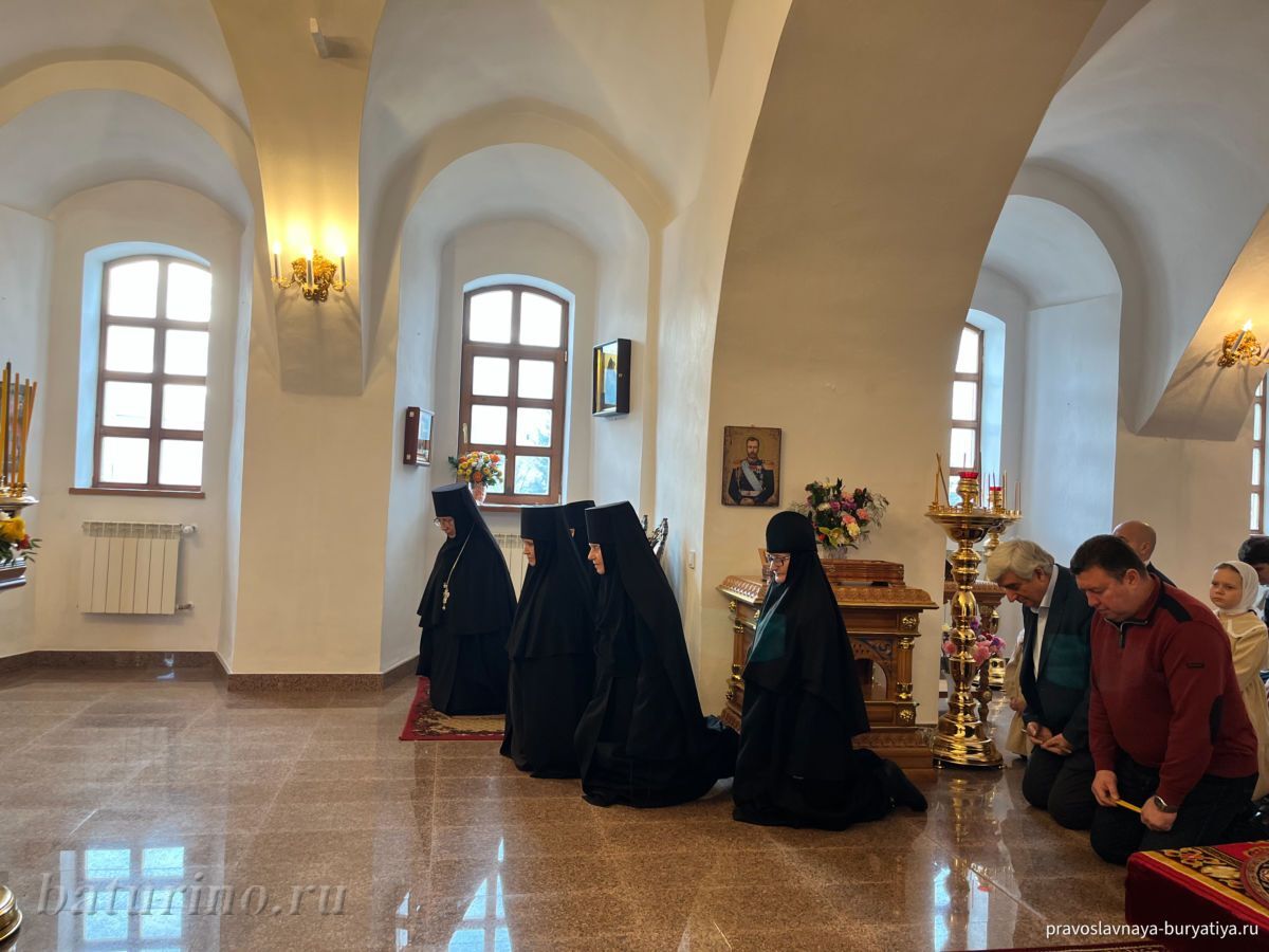 Владыке сослужили секретарь Улан-Удэнской и Бурятской епархии, настоятель Одигитриевского собора г. Улан-Удэ иеромонах Тихон (Тихомиров), благочинный Улан-Удэнского церковного округа, настоятель Вознесенского храма г. Улан-Удэ иерей Роман Хлыбов, клирик монастыря протоиерей Михаил Литвинов, руководитель епархиального молодежного отдела, настоятель Троицкого храма г. Улан-Удэ иерей Николай Власов и настоятель храма в честь Казанской иконы Божией Матери с. Горячинск иерей Николай Аюшеев.