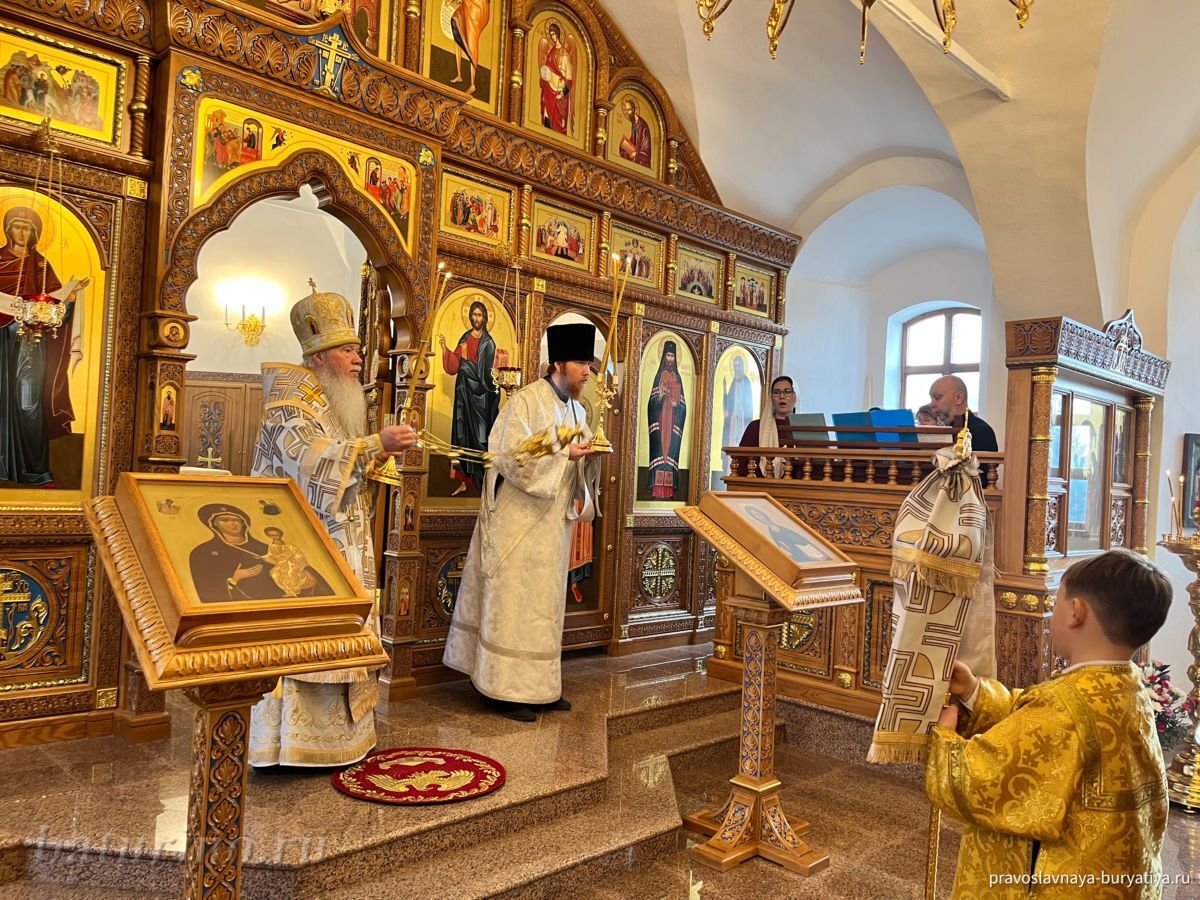 Обращаясь к молящимся с архипастырским словом, митрополит Иосиф напомнил глубокую историю храма и его значение для православных людей. «Со времен царя Алексея Михайловича русские люди стали селиться на Бурятской земле. И конечно, всюду, куда они приходили, они ставили сначала крест, потом часовню, потом созидали храм Божий. Конечно же, как и по всей Святой Руси, первые храмы здесь, в Бурятии, были деревянные. Но потом уже, в XVIII веке, стали строиться и благолепные каменные храмы. Вот один из этих храмов, храм в честь Сретения Господня, был сооружен нашими благочестивыми предками, которые вложили в него свою веру, свою любовь к Богу, свою надежду на помощь Божью».