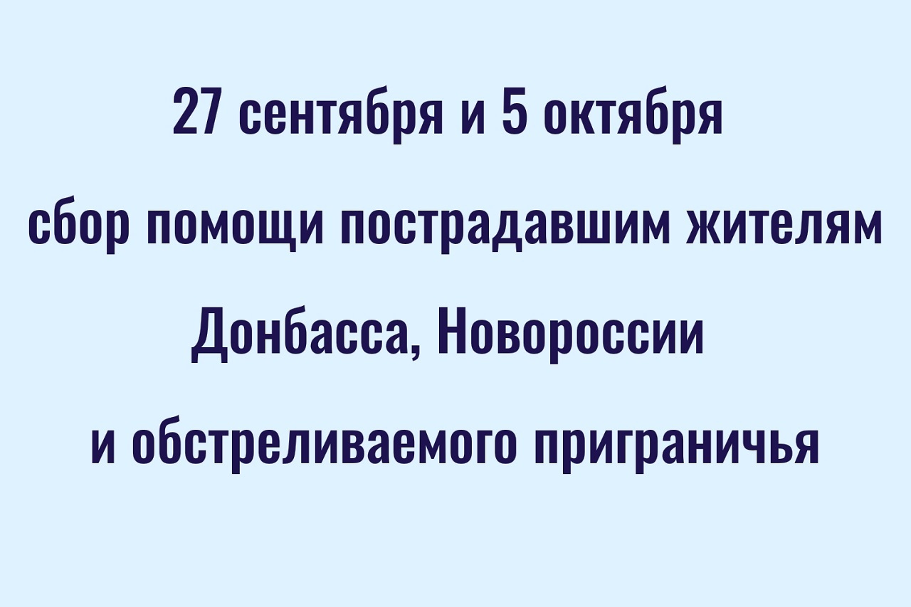 По благословению Святейшего Патриарха Московского и всея Руси Кирилла 27 сентября и 5 октября 2025 года во всех храмах и монастырях на территории России пройдет общецерковный денежный сбор для пострадавших мирных жителей Донбасса, Новороссии и обстреливаемого приграничья.